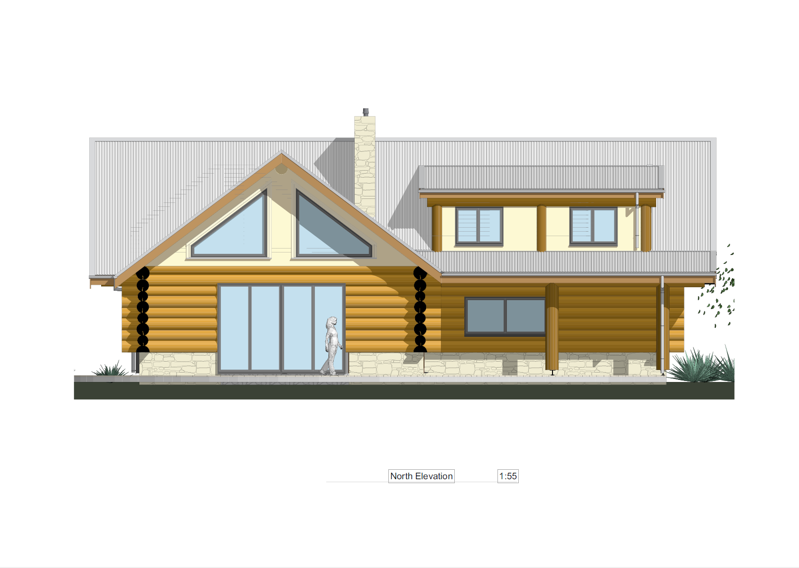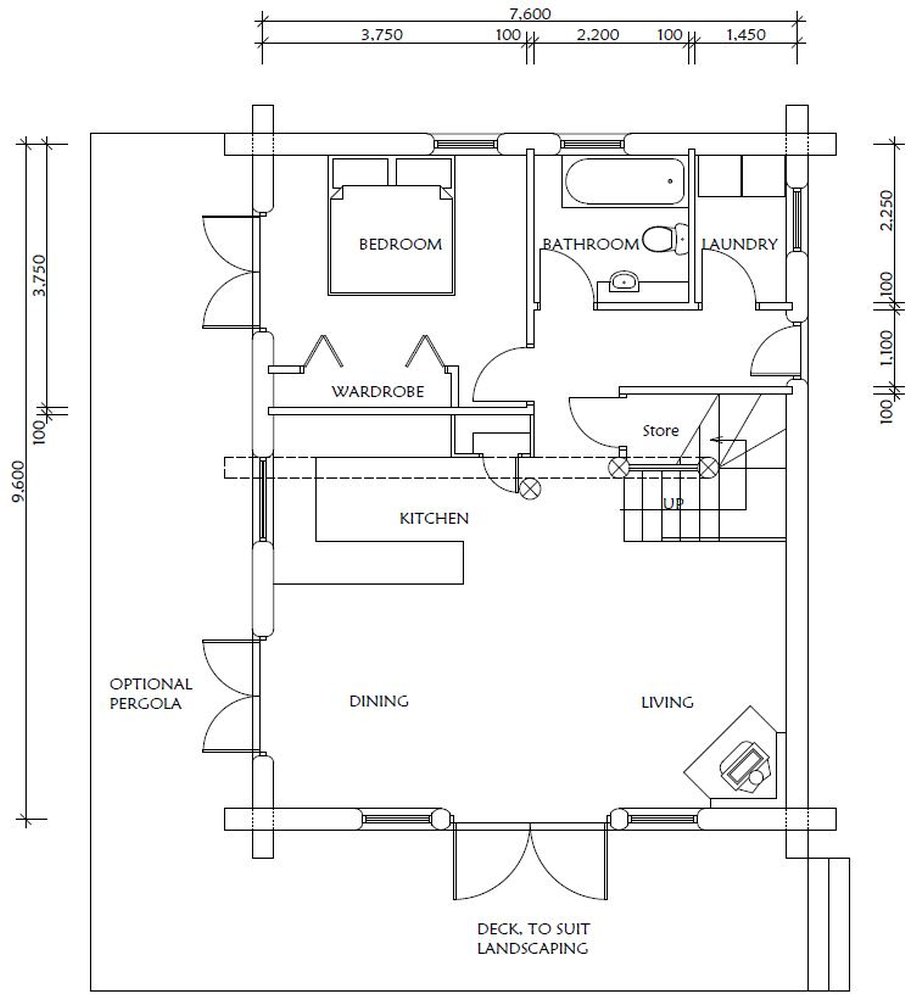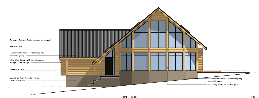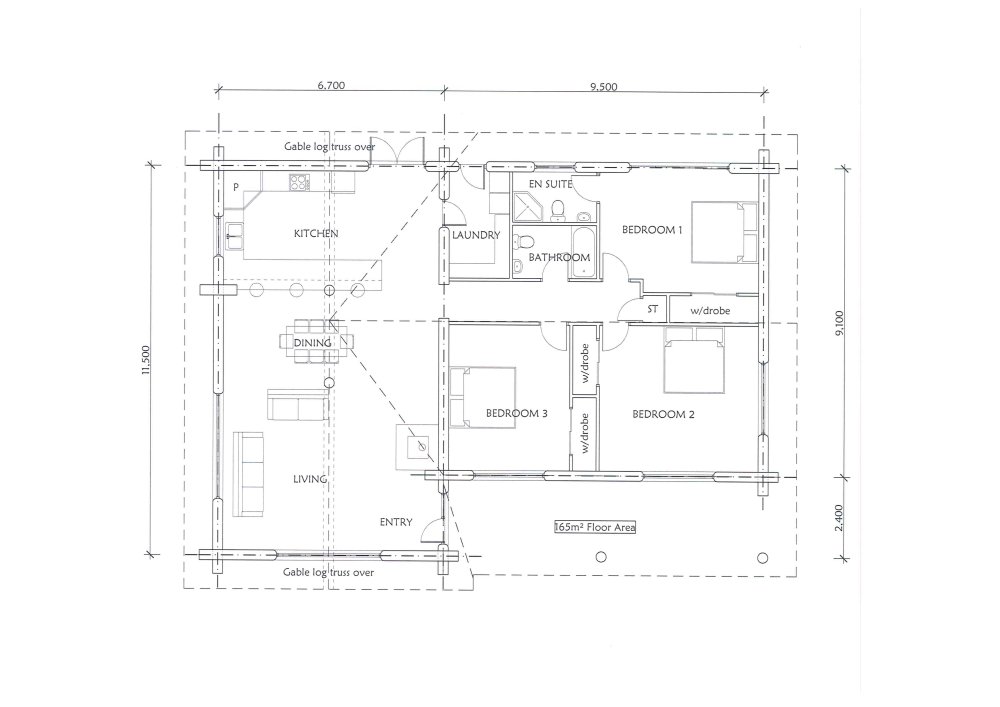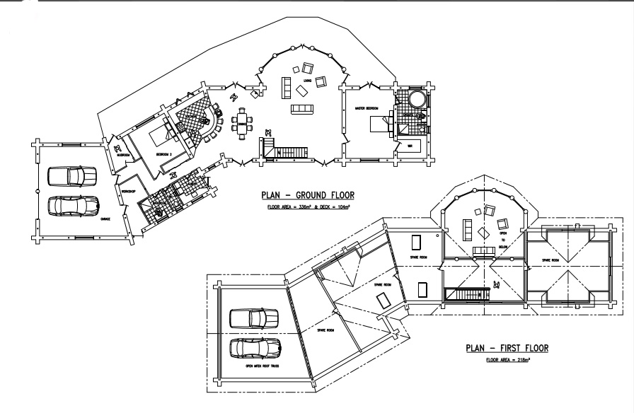 As you can see in the examples of plans below, log walls are drawn about 300mm thick and conventional walls are still drawn at 100mm, the log walls are always the structural walls, but you do not need foot thick handcrafted log walls around every wardrobe toilet cupboard etc. You can have as many log walls as you like, the Architects and engineers we use are very experienced in log home design and are able to provide you with a log home that best suits your needs your location your views etc.