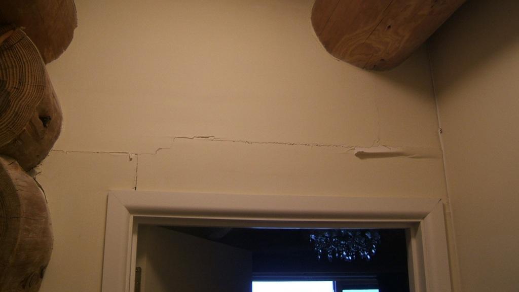 Damage to the log house was minor with little evidence of damage to the log elements. There has been minor lateral movement of some log walls (up to 20mm – this is especially evident in the internal log wall adjacent to the main lounge) otherwise the log walls appear to be in sound condition. Some extension of checks in logs was observed which is likely the release of internal tension. Refer to photos below.