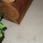 A detailed survey should be carried out to determine the extent of lateral movement, if any, of the log walls on the foundation slab. Log walls which have moved laterally should be jacked back into their correct location and re-fixed. This may also improve the separation of the kitchen joinery from the external log wall.