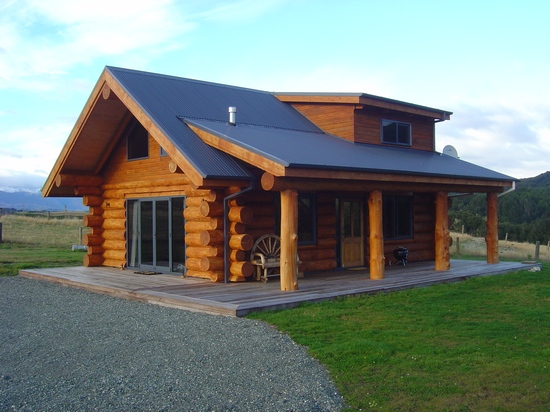 Our exclusive “Homebush” model log home shell, delivered and assembled in November 2005 to a lovely and large section in Ohau Village. That’s Lake Ohau and Ben Ohau in the photo.