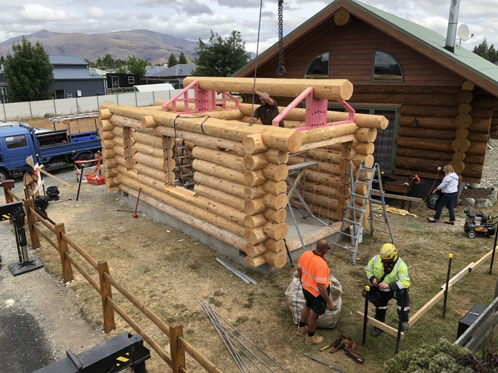 The Ungrateful alpaca cabin was once an alpaca shelter in a paddock at Geraldine, but the alpaca didnt use it even when it snowed, so cleaver log builder cut the cabin in half, down the short walls, expanded it by 1.2m, called expanded log construction, then added another round and a half on top, and it became another beauty sleeping cabin at our camp site.