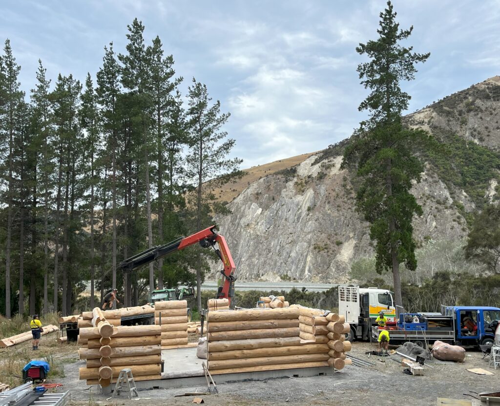 yes we do have a log office at our construction yard right here in Geraldine, you are welcome any time, This is probably the log building hub of the southern hemisphere, its a place where customers can sit and meet with a log home architect, you can grab a coffee and browse the log home plan books, and tons of other log home books. I have pictures of every home we have built, and tons of photos of interiors of log homes, and all of the specific style types, roof types, interior styles etc, that you can choose for your log home. It is the class room for the numerous log home building courses I teach. And its the pulse center for Natural log homes, where you’ll sometimes find Christine at the desk.