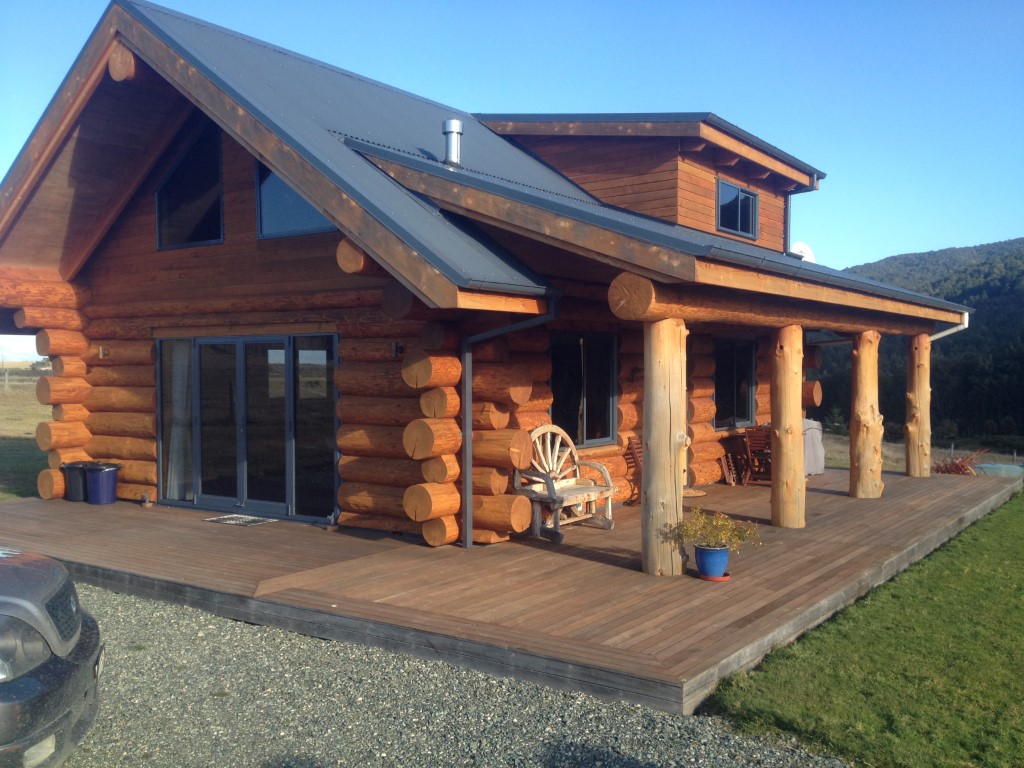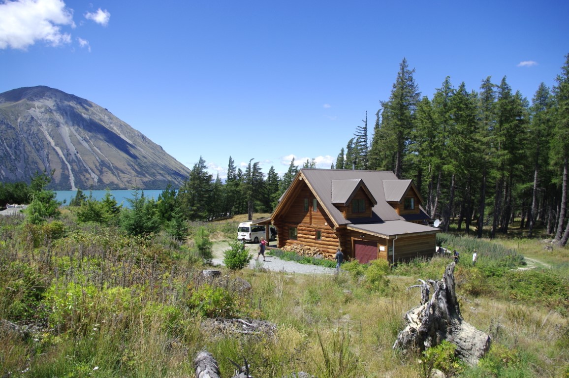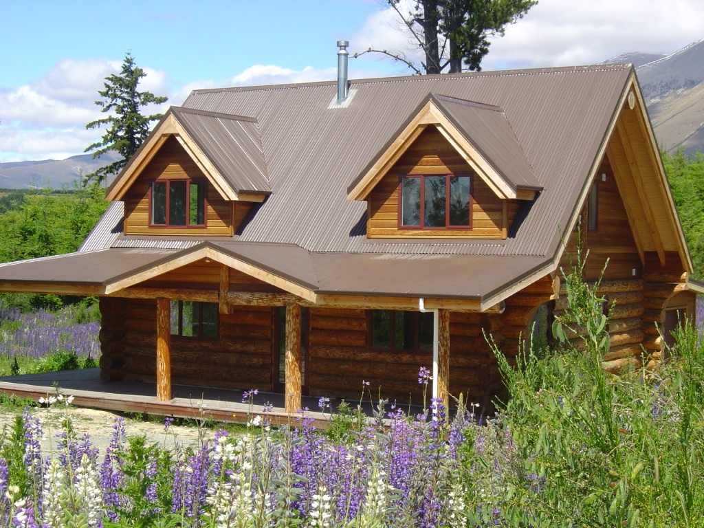 Our exclusive “Homebush” model log home shell, delivered and assembled in November 2005 to a lovely and large section in Ohau Village. That’s Lake Ohau and Ben Ohau in the photo.