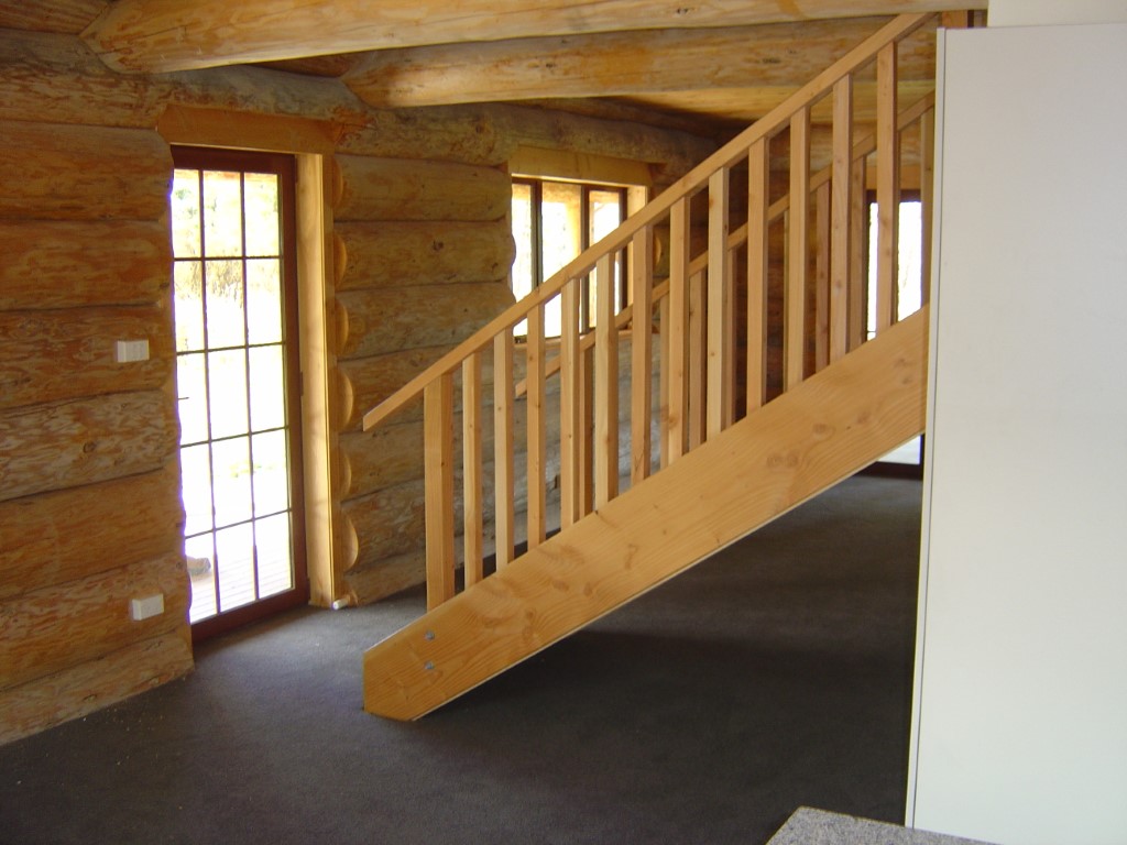 87 sqm holiday cabin /63sqm down stairs, 23sqm up/. Features log roof system, log floor joists, loft, conventional entry, french doors. Clever design done by one of our architects. Set in native bush, this holiday cabin has been designed by one of our architects. Clever design features log roof system, log floor joists, loft, conventional entry area, french doors, …