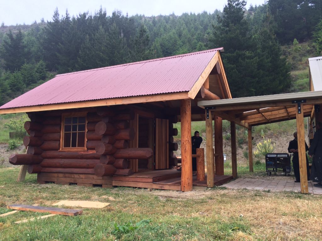 The Ungrateful alpaca cabin was once an alpaca shelter in a paddock at Geraldine, but the alpaca didnt use it even when it snowed, so cleaver log builder cut the cabin in half, down the short walls, expanded it by 1.2m, called expanded log construction, then added another round and a half on top, and it became another beauty sleeping cabin at our camp site.