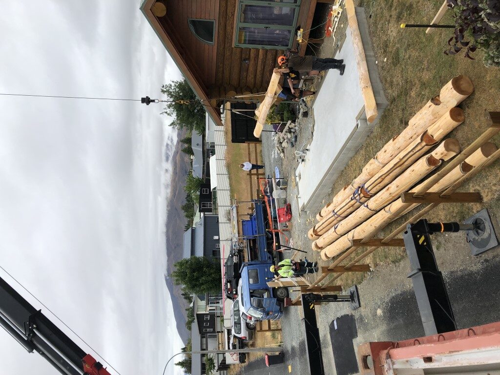 yes we do have a log office at our construction yard right here in Geraldine, you are welcome any time, This is probably the log building hub of the southern hemisphere, its a place where customers can sit and meet with a log home architect, you can grab a coffee and browse the log home plan books, and tons of other log home books. I have pictures of every home we have built, and tons of photos of interiors of log homes, and all of the specific style types, roof types, interior styles etc, that you can choose for your log home. It is the class room for the numerous log home building courses I teach. And its the pulse center for Natural log homes, where you’ll sometimes find Christine at the desk.